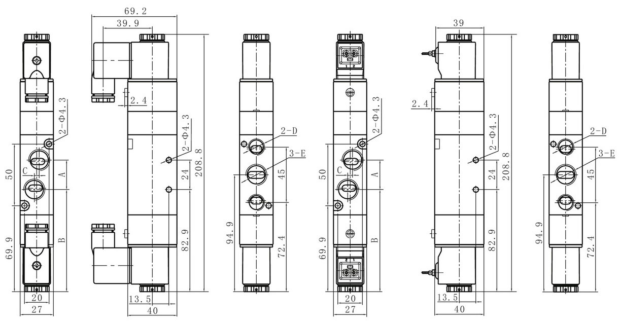 4V310 Series directional control valves is a body ported mounting type and valve can be surface mounted.